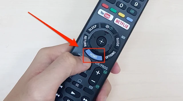 Bước 1 – Bạn nhấn vào nút “HOME” trên Remote để về giao diện chính của tivi.
